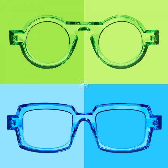Cela peut être par des associations fluo sur une ligne minimaliste ou un univers d'inspiration inattendu (par exemple, "la fête foraine", "les poissons", "les pommes de terres et les fritteries", "le cyclisme sport national"... il n'y a pas de limite), ou carrément des collections aux designs asymétriques qui miraculeusement sont parfaitement harmonieuses sur un visage !